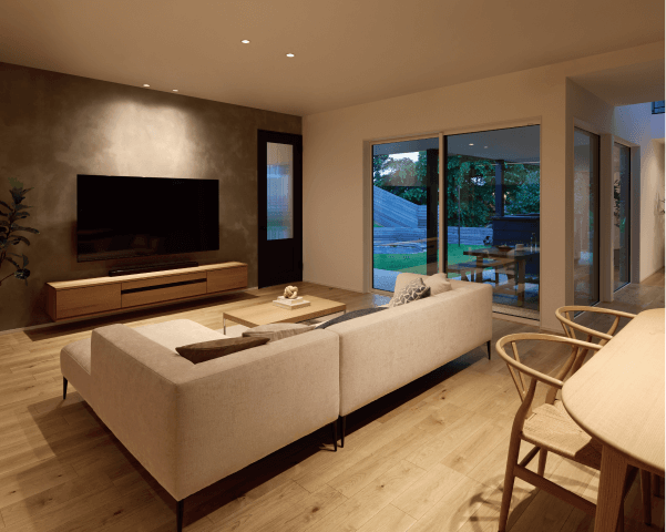 これは、天井面における照明器具の占有率が大幅に下がることを意味し、結果として天井の余白が広がる。余白が増えることで視覚空間にゆとりが生まれ、見た目のノイズが減り、より洗練された印象を与えることができる。特に住宅では長時間同じ場所に滞在する。その為空間の質に直結するこの「余白の力」が大きな価値を持つ。